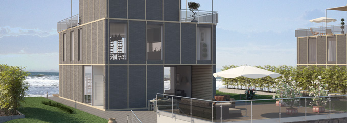 Mole & Meer – Wellen & Weite Die Ferienhäuser befinden sich auf der mehrere hundert Meter in die Ostsee ragenden Nordmole. Sie liegen direkt an der Ostsee und bieten nach Norden einen herrlichen, unverbaubaren Blick auf die Schleimündung sowie das offene Meer. Mehr Ostsee geht nicht. Auf der südlichen Seite erstreckt sich ein eigener Sandstrand. Ihr Bootsanliegeplatz ist in unmittelbarer Nähe. Durch die exponierte erhöhte Lage der Häuser haben Sie einen guten Überblick und gleichzeitig eine einmalige Privatsphäre. Die Häuser entstehen in einer modernen und äußerst pflegeleichten Architektur. Durch die konsequente Konzentration auf die Materialien Glas, unbehandeltes Eichenholz und Stein entfällt eine aufwendige Hauspflege, wie dies beispielsweise reinen Holzbauten der Fall wäre. Ständiges Streichen der von der Ostseeluft angegriffenen Außenwände, Fenster sowie Balkone gehört somit der Vergangenheit an. Das Innenleben der Häuser gestaltet sich großzügig und lichtdurchflutet mit unvergleichlichem Ausblick durch die großen Fensterfronten auf die Ostsee sowie Strand und Hafen. Selbstverständlich gehört ein Kaminofen zur Ausstattung. Alle Häuser verfügen über eine Luftwärmepumpe sowie eine geregelte Be- und Entlüftung. Neben geringen Verbrauchskosten führt dies auch dazu, dass Ihr Ferienhaus stets mit frischer Luft versorgt wird. So können Sie sich ab der ersten Minute erholen, statt sich mit dem Vertreiben des typischen „Ferienhausmiefs“ zu beschäftigen. Lüftung, Heizung und Sauna können Sie optional auch von unterwegs über Ihr Smartphone ansteuern.